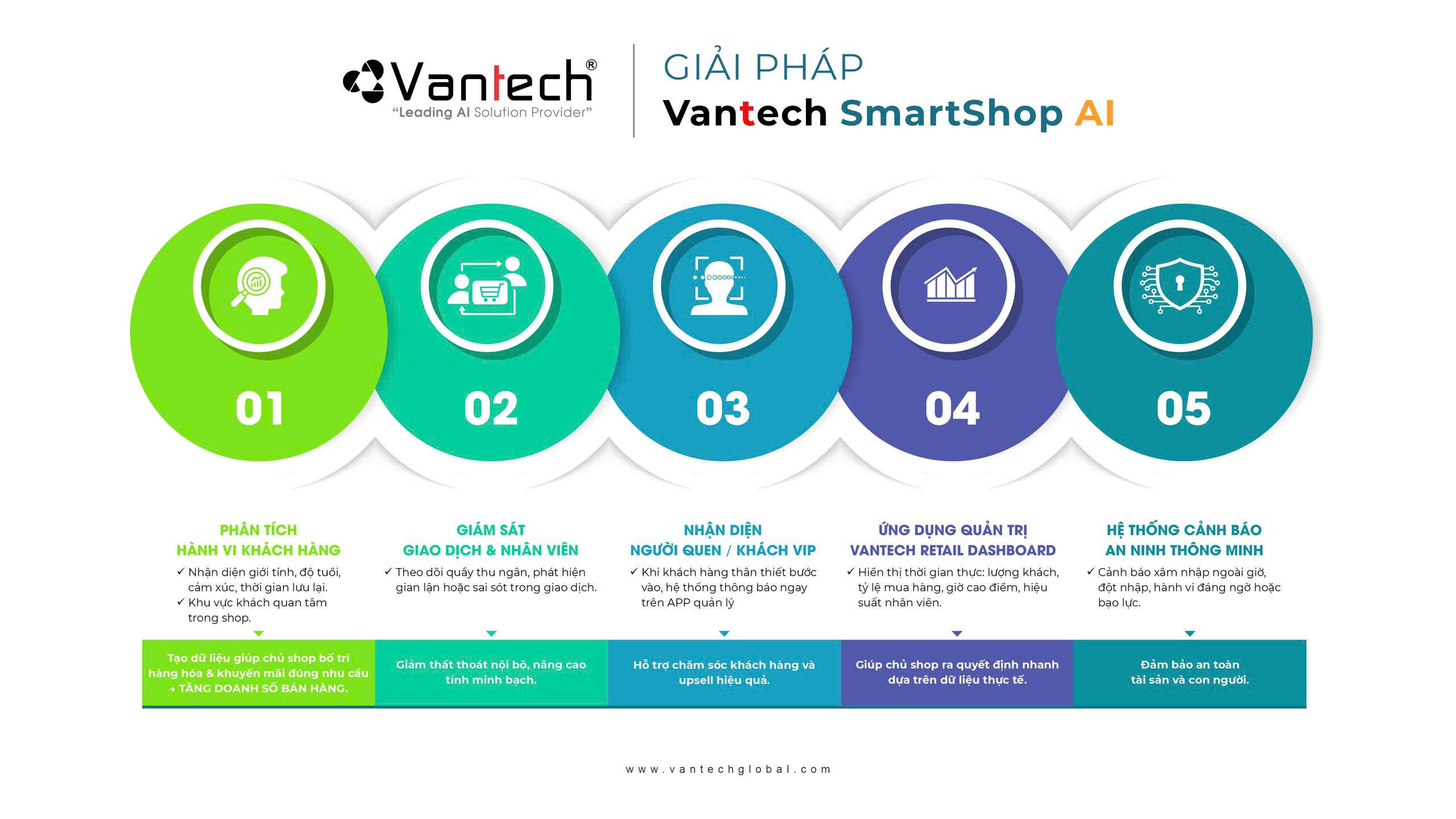 Tất cả các bộ giải pháp này đều được Vantech đóng gói sẵn về thiết bị – phần mềm – tài liệu triển khai – hướng dẫn marketing, giúp đại lý dễ dàng bán, triển khai và sinh lời nhanh chóng.