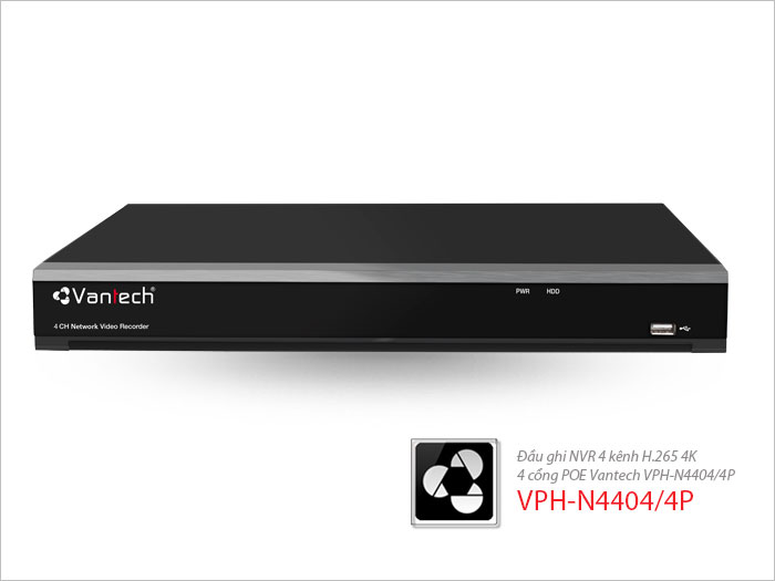 Đầu ghi NVR 4 kênh H.265 4K 4 cổng POE Vantech VPH-N4404/4P