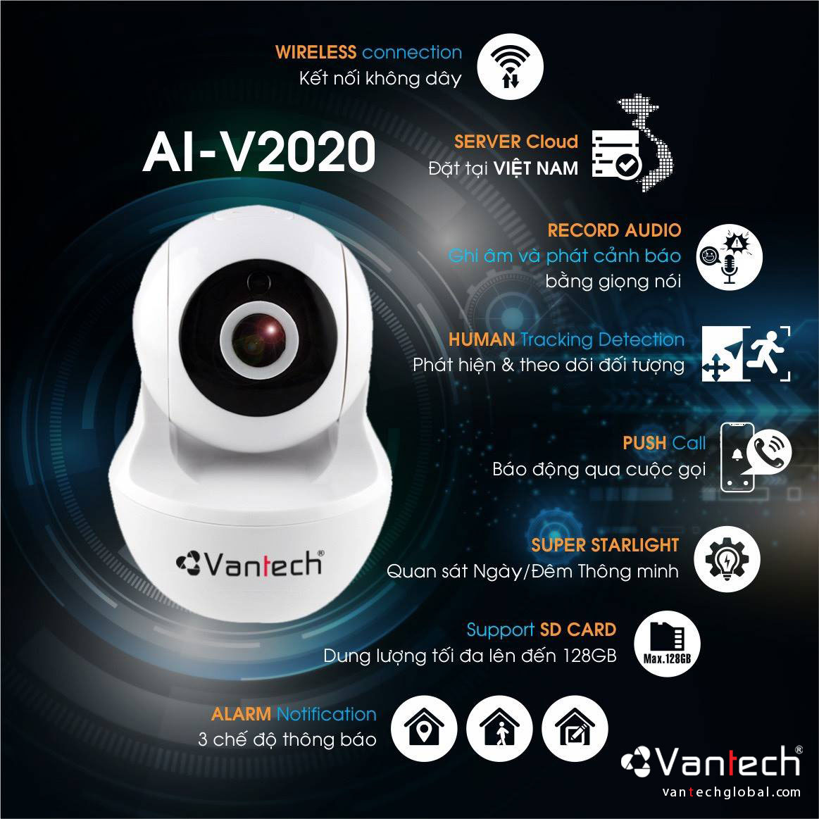 Vantech Camera 2.0MP AI Wifi Robot Pan/Tilt Starlight AI-V2020